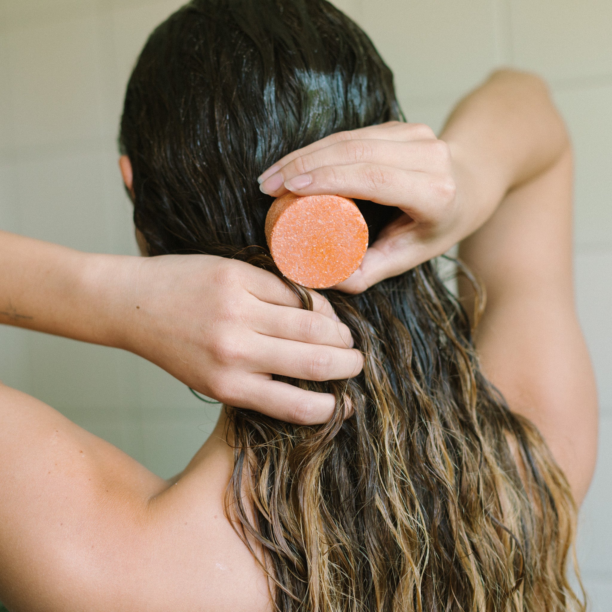 · MODO DE USO: Moja tu pelo, frota la barra directo sobre él y masajea suavemente para generar espuma. Después, enjuaga y disfruta de un pelo limpio y radiante.